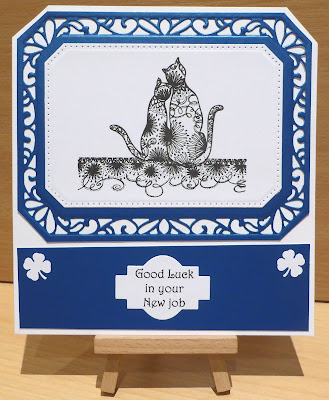 My card today uses up some patterned paper snippets. I cut two different Christmas patterned papers into 1 1/2 cm strips and wove them together. I die cut a red frame using Creative Expressions 'Double Pierced Square' dies and attached it over the woven pattern. This was matted and layered onto a white piece of card and the red card blank. The sentiment was stamped the Versafine 'Onyx'.