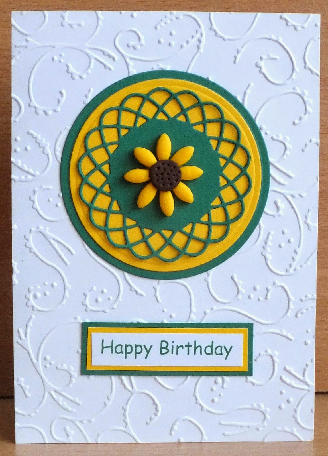 I used the lovely Lavinia 'Star Gazing' stamp for this 65th Spring Fold birthday card. To get the effect of the moon behind the hill, I used a circle mask and inked the sky first. Next I removed circle mask and used torn paper to cover the sky and then inked the grass. It took a few attempts - I had a mental block of the best way to get the effect of the moon behind the hill! The inked image was matted on silver pearlised card, although it looks grey in the photo. I used tiny clear gems for the stars and black gems along the silver border punched base.